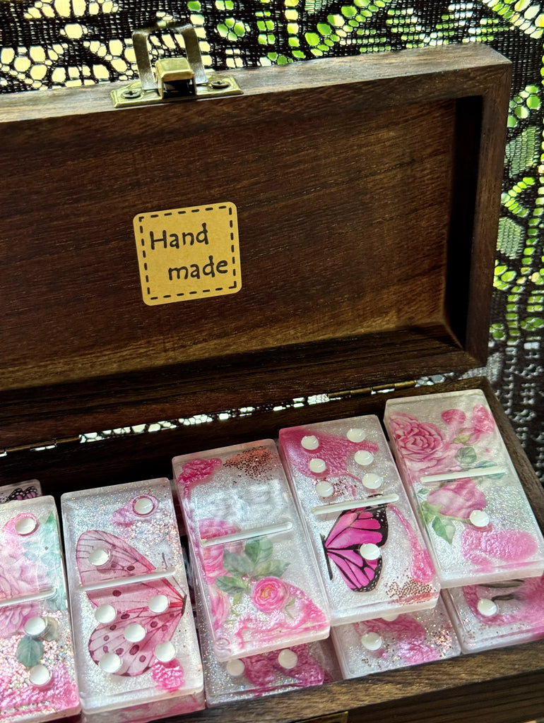 Handmade unique design. Fully playable with opaque backers. Comes in a wooden storage box.